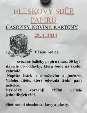 29. 4. 2024 Sbíráme časopisy, noviny, kartony.