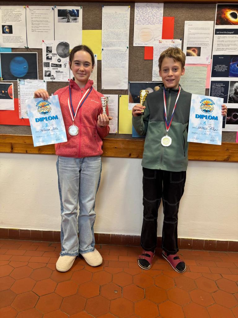 V naší 5. A jsou vynikající plavci, a proto s radostí oznamujeme, že v plavecké soutěži: "O pohár starosty 2025", se Filip Veselý umístil na 1. místě a Julie Pešková se umístila na 2. místě. Gratulujeme!