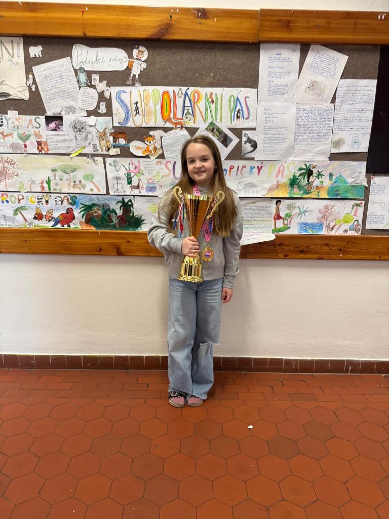 Slavíme, protože žákyně Anastázie Pajerová z 5. A přivezla do ČR v polovině února pohár s medailí z nádherného třetího místa z Mistrovství Evropy ve Fitness gymnastice na Kypru. Skvěle reprezentuje Českou republiku i naši školu. Gratulujeme!