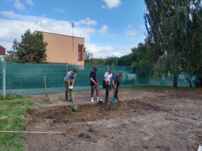Příprava na beachvolejbalové hřiště a průzkum terénu s detektorem kovů