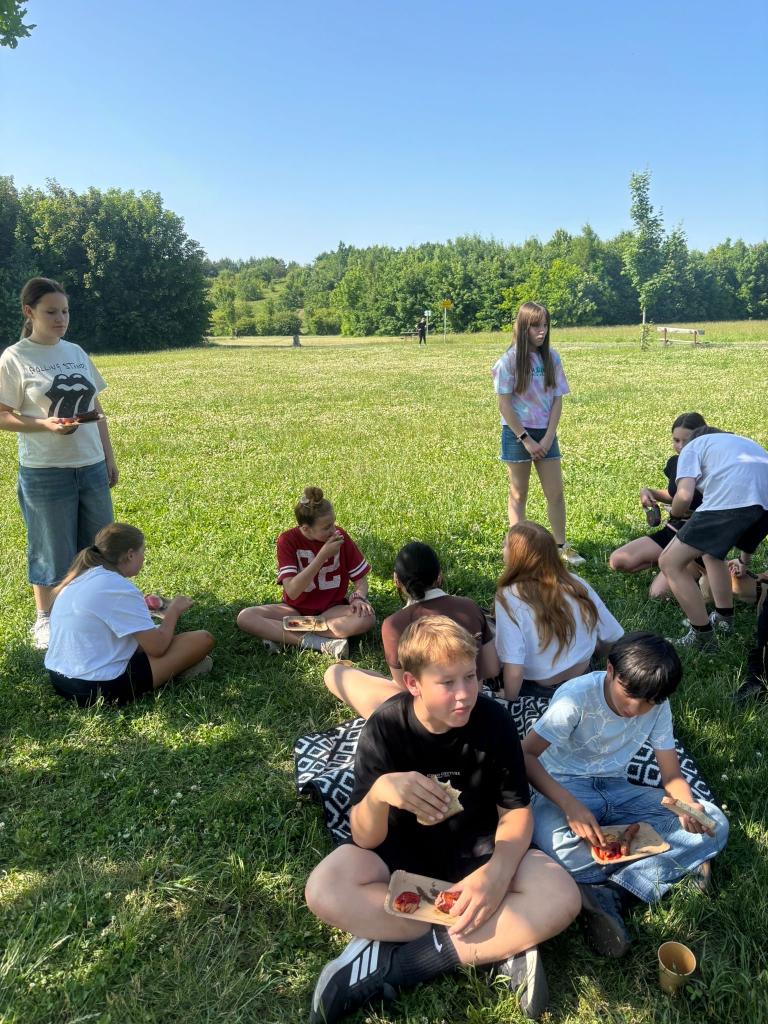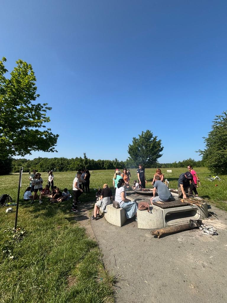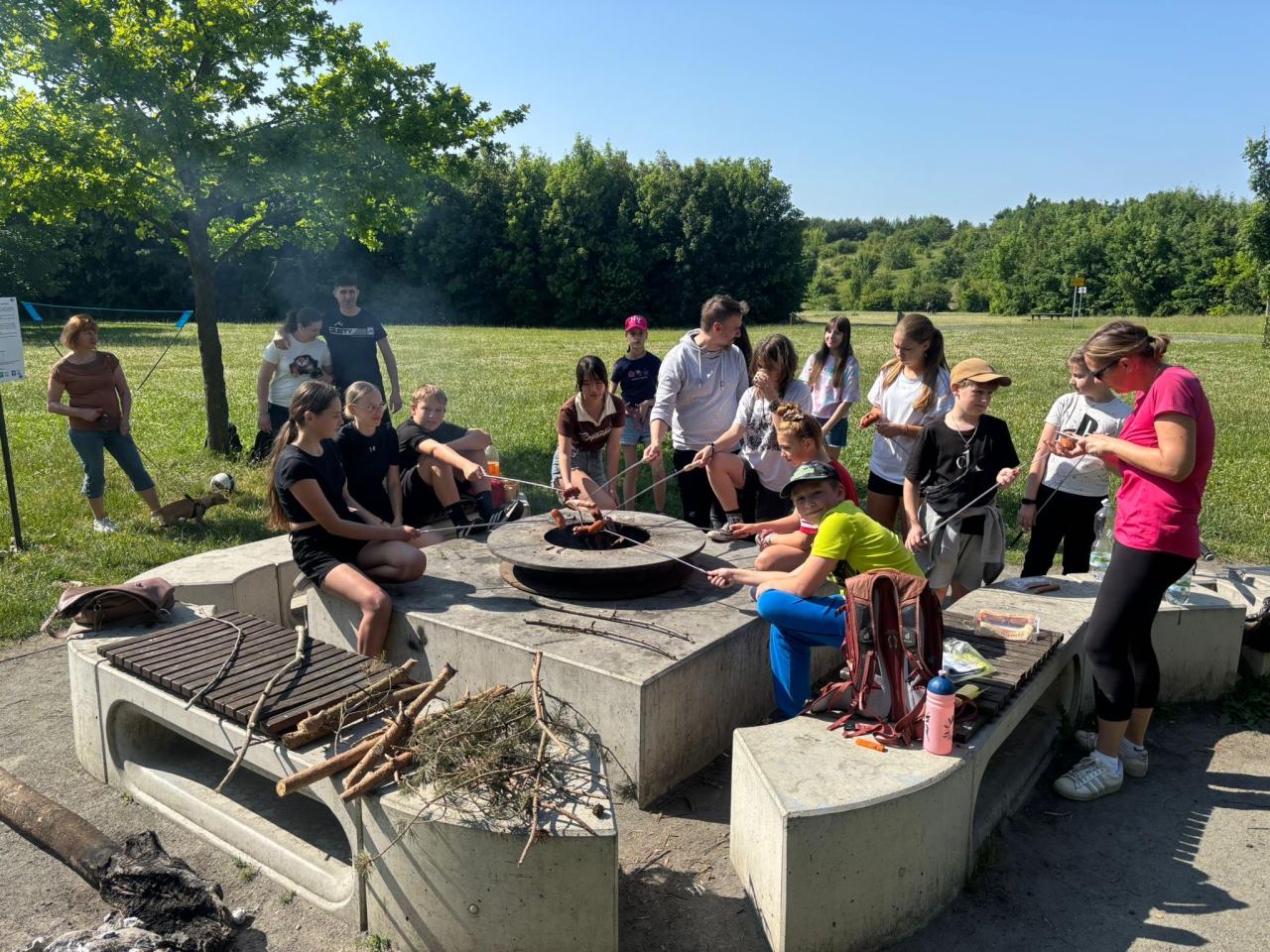 Třída 6. B se pomalu loučí s prvním prožitým rokem na druhém stupni. Společnému opékání buřtů přálo i krásné počasí ☀️ a skvělá atmosféra.