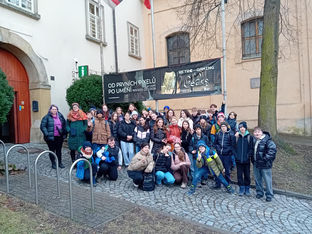 Ve dnech 12. a 13. 2. navštívily třídy 4.A, 4.C, 6.B a 6.C výstavu s názvem „OD PRVNÍCH PIXELŮ PO UMĚNÍ, Retrogaming i Creaks od Amanita Design“ ve Chvalském zámku.